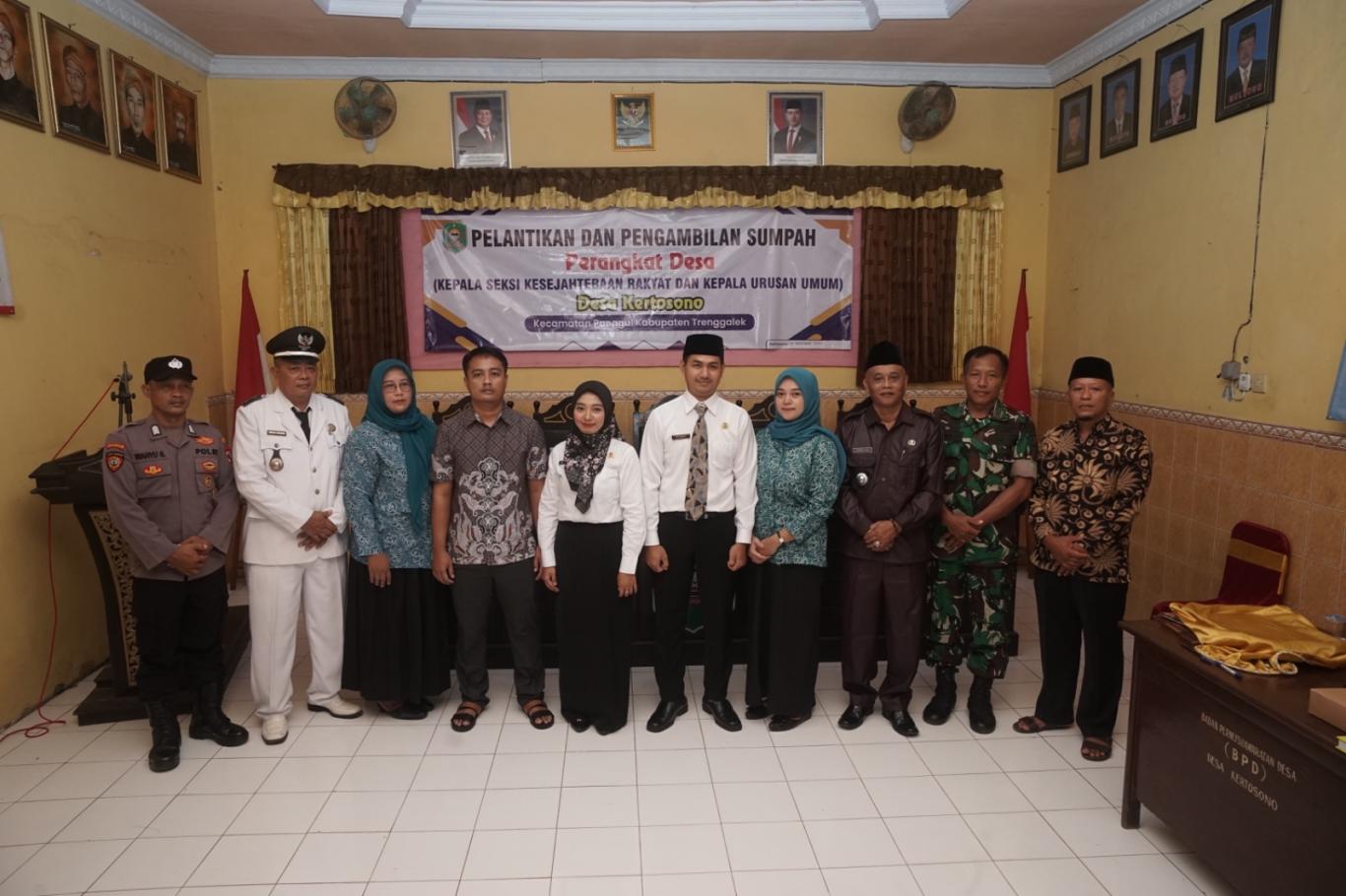 Tepat pada pukul 10.00 WIB Hari Rabu 31 Desember 2025 di Balai Desa Kertosono, dilaksanakan pelantikan Perangkat Desa terpilih oleh Kepala Desa Kertosono. Acara ini dihadiri oleh Bapak Camat Panggul beserta Forkopimcam Kecamatan Panggul, Kapolsek Panggul beserta Babhinkamtibmas Desa Kertosono, Danramil Panggul beserta Babinsa Desa Kertosono, Ketua dan Anggota BPD Desa Kertosono, Perangkat Desa Kertosono, tokoh masyarakat, dan beberapa kerabat/keluarga terlantik.